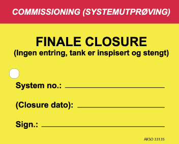 Merkelapper mjukplast m/hull – Commissioning Final Closure