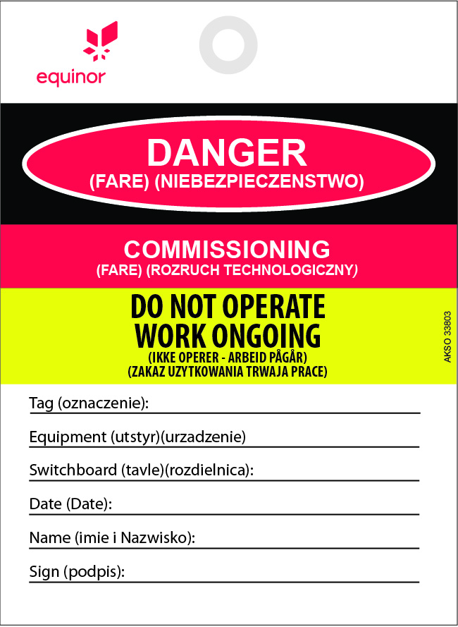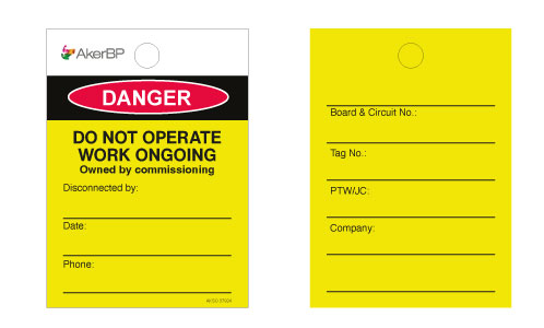 Merkelapper mjukplast m/hull – Commisioning – Do not opperate